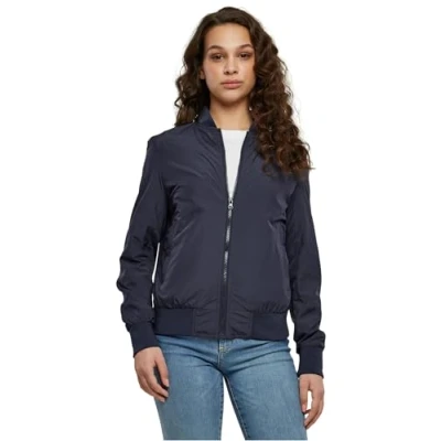 URBAN CLASSICS Women's Light Bomber Jacket with Ribbed Cuffs, Lightweight Flight for Mid Season Weather, Longsleeve Zipper & Pockets, Colour: Navy, Size: X Small