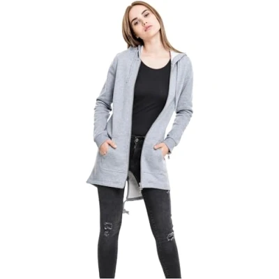 URBAN CLASSICS Women's Long Hoodie Parka, Jumper with Drawstring Zip, Sleeves Large Pockets & Elasticated Cuffs, Cardigan Hoodie, Colour: Grey, Size: Medium