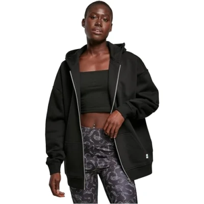 Urban Classics Women's Oversized Zip Hoodie Cardigan Sweater, Black, XS