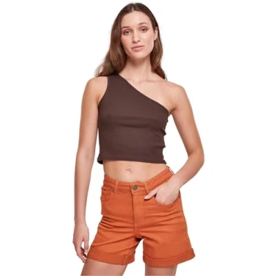 Urban Classics Women's Tb2609 ladies Cropped Asymmetric Top Cami Shirt, Brown, XS