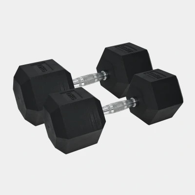 Achieve your fitness goals with the Urban Fitness Pro Hex Dumbbells - perfect for a whole-body workout without leaving the house. These rubber-encased durable hexagonal weights are designed to endure intense daily weightlifting use. Their anti-roll shape provides a stable base for safe, stress-free workout space. The dumbbells are essential for a full-body conditioning, training both upper and lower body muscles with a wide range of exercises for balanced strength gains. Complete a range of exercises including hammer, bicep and tricep curls. Target your legs by adding weight to lunges or squats to increase your strength as well as enhancing your balance. Add some extra resistance to your upper body and lower body workouts. The rubber coated design has a knurled handle that is non-slip and comfortable. Their premium ergonomic design ensures a steady grip for secure lifting, added stability and comfort during exercises. • Nonslip handle • Comfortable rubber coated design • Anti-roll shape weights • Sold as a pair • Weight: 15kg (each)