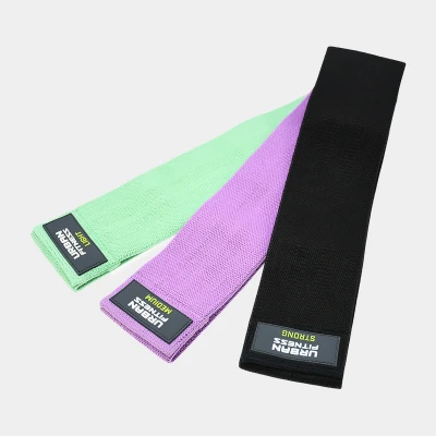 Including 3 different strengths of resistance, helping you hit your goals - by pushing you from beginner to expert. Offering more durability and is more hard wearing than traditional latex resistance bands. These fabric bands won't snap or slip through extensive use. Enhance your workout today. · 3 Resistance strengths · Light = Green | Medium = Purple | Strong = Black · Durable and hard wearing. · Versatile, great for home, studio and gym workouts · Set of 3 · 15inch