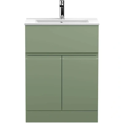 Urban Floor Standing Vanity Unit with Basin 2 Satin Green 600mm Wide Hudson Reed