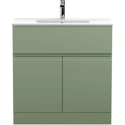 Urban Floor Standing Vanity Unit with Basin 2 Satin Green 800mm Wide Hudson Reed
