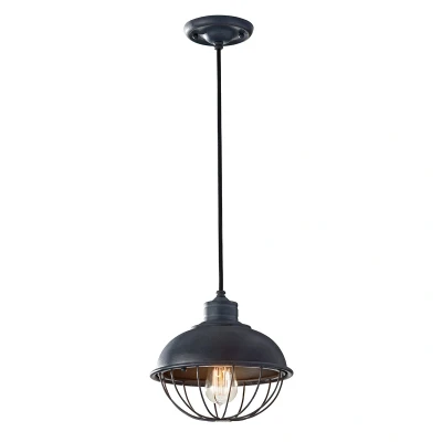 This celling mini pendant is has a solid drop rod. Featuring a circular light cage made up of two parts, the top part is sold, fitting onto caging as the bottom half. Finished in weathered zinc.