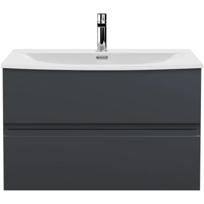 Urban Wall Hung 2 Drawer Vanity Unit with Basin 4 Satin Anthracite 800mm Wide Hudson Reed