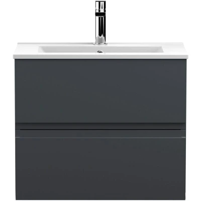Urban Wall Hung 2 Drawer Vanity Unit with Basin Satin Anthracite 600mm Wide Hudson Reed