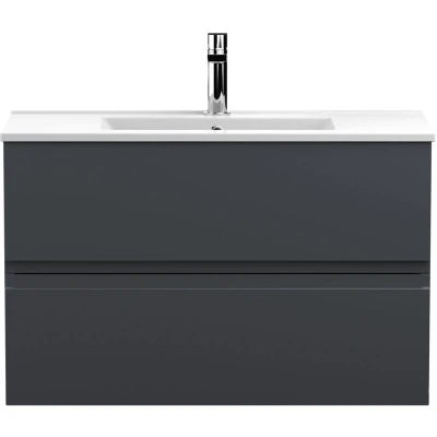 Urban Wall Hung 2 Drawer Vanity Unit with Basin Satin Anthracite 800mm Wide Hudson Reed