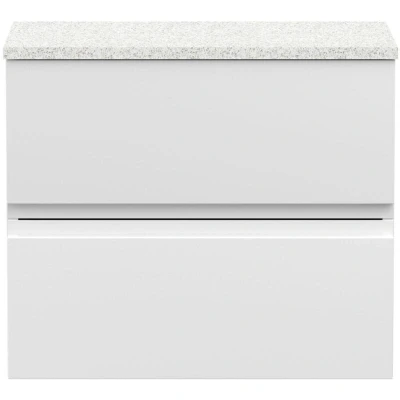 Urban Wall Hung 2 Drawer Vanity Unit with Carrera Marble Worktop 600mm Wide Satin White Hudson Reed