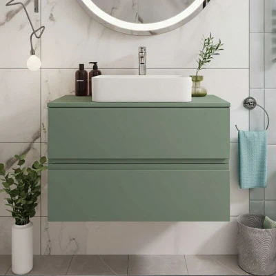Urban Wall Hung 2 Drawer Vanity Unit with Worktop 800mm Wide Satin Green Hudson Reed