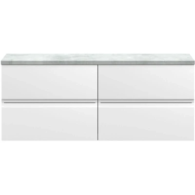 Urban Wall Hung 4 Drawer Vanity Unit with Bellato Grey Worktop 1200mm Wide Satin White Hudson Reed