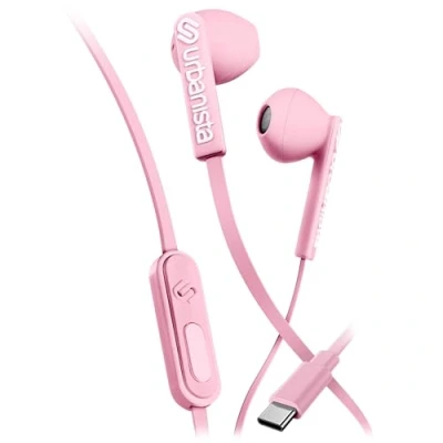 Urbanista Wired Earbuds, Tangle Free USB C Earphones Call Handling with Microphone, Type Headphones Stereo Input, Button Input Voice Assistant, San Francisco, Pink
