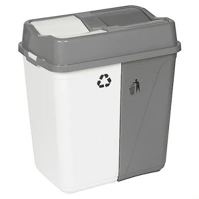 URBNLIVING 100L Duo Kitchen Bin Waste Garbage Can 2 Compartments With Bas Connectors (White/Grey)