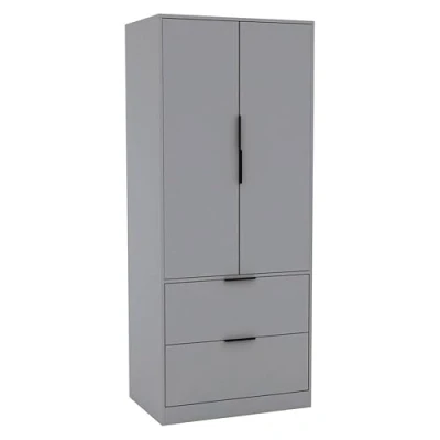 URBNLIVING 2 Door Drawer Minimalist Bedroom Grey Wardrobe Storage & Hanging Rail Modern Furniture with Clothes Shelf for Home Organiser Unit 179cm H x 74cm W 50cm D