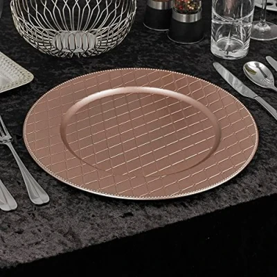 URBNLIVING 33cm Christmas Dinner Charger Plates Placemats Dining Table Setting Reusable Party Decor (Diamond Cross Rose Gold, 6 Plates)