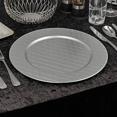 URBNLIVING 33cm Christmas Dinner Charger Plates Placemats Dining Table Setting Reusable Party Decor (Diamond Cross Silver, 12 Plates)
