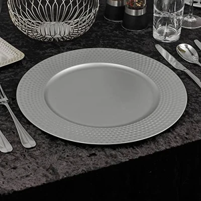 URBNLIVING 33cm Christmas Dinner Charger Plates Placemats Dining Table Setting Reusable Party Decor (Matt Geo Silver, 6 Plates)