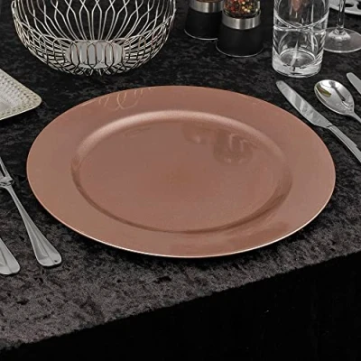 URBNLIVING 33cm Christmas Dinner Charger Plates Placemats Dining Table Setting Reusable Party Decor (Mettalic Rose Gold, 6 Plates)