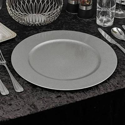 URBNLIVING 33cm Christmas Dinner Charger Plates Placemats Dining Table Setting Reusable Party Decor (Mettalic Silver, 12 Plates)