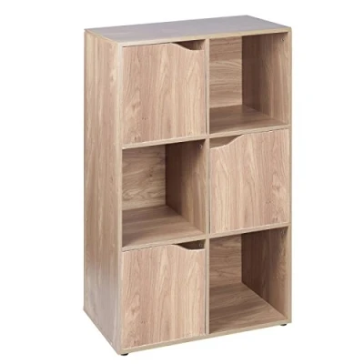 URBNLIVING 6 Cube Oak effect Modular Wooden Bookcase Shelving Display Shelf Storage Unit with Three Doors