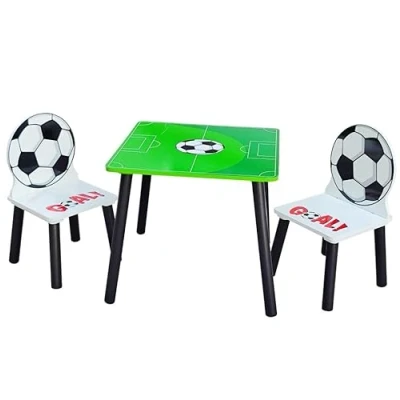 URBNLIVING Kids Wooden Table & 2 Chairs Themed Set Furniture for Play Room Study Desk Toddlers Junior (Football)