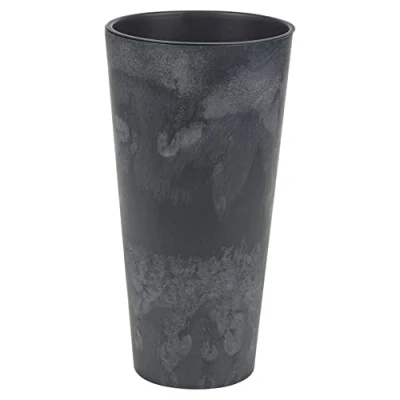 URBNLIVING Large Tall Concrete Effect Flower Plant Pot Indoor Outdoor Garden Patio Planters (Black, 250mm)