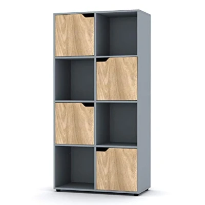 URBNLIVING Wooden Cubed Bookcase With Doors (8 Cube, Grey And Oak Door)