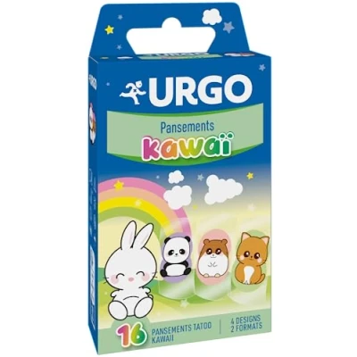 Urgo Kawai Dressings Protection of Superficial Wounds 2 Sizes and 4 Cute Animal Designs: Panda, Rabbit, Cat Hamster 16 Plasters