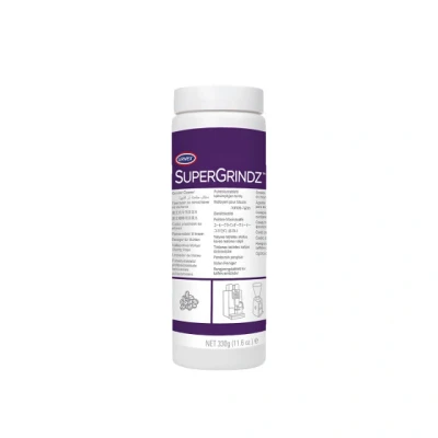 Keep your grinder clean and your coffee tasting fresh with the "Urnex SuperGrindz" grinder cleaning tablets! Designed specially for bean-to-cup coffee machines, this all-natural grinder cleaner removes coffee particles and oil residue from the burrs with no disassembly required. Its unique hydrophobic formula allows for safe, convenient use, all while helping improve grind consistency and reduce bitterness caused by stale coffee oils.KEY BENEFITS:- First grinder cleaner developed specially for bean-to-cup coffee machines- Removes coffee oils and stuck particles from grinder burrs- Helps improve particle size distribution and coffee flavour- Hydrophobic formula for safe and convenient use- All-natural, biodegradable, phosphate-free, food-safe, gluten-free- Easy to use: no grinder disassembly requiredHOW TO USE?1. Remove all coffee beans from the bean container.2. Brew 2 large cups of coffee to empty the grinding chamber.3. For bean-to-cup coffee machines, add 26 g (1 jar cap) of "SuperGrindz" to the bean container.4. Add 78 g of coffee beans (3 jar caps) on top.5. Brew 5 large cups of coffee, or keep brewing until the coffee pucks no longer contain traces of the yellow "SuperGrindz" granules.Storage conditions: store in a cool, dry place. Close the container tightly after use.