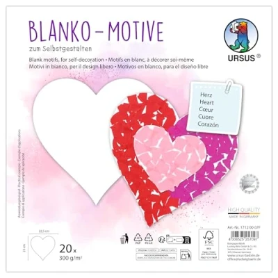 Ursus 1712 00 07F Blank Heart Motifs, Pack of 20 300 g/m² Photo Cardboard, 23 x 22.5 cm, DIY Craft Paper for Colouring, Gluing, Cutting and Designing Yourself