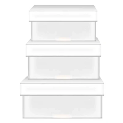Set of 3 white square gift boxes for DIY and decorating Made from white laminated cardboard In 3 different sizes: approx. 12 x 12 x 5 cm, 10 x 10 x 4 cm and 8 x 8 x 3 cm The boxes can be painted, glued and decorated with rhinestones Ideal for gift wrapping and storing jewellery, toys and office items, Manufacturer: Buntpapierfabrik Ludwig Bähr GmbH & Co.KG