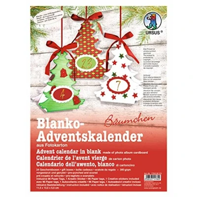 Ursus Advent Calendar Hobby Set Made of Photo Album Cardboard Blank / Tree Design 24 gift boxes (300 g/m²) in white Pre-cut and notched Includes 96 paper tags and creative stickers Each box is approximately 11.5 x 13.5 x 5.5 cm - instructions included (cannot guarantee in English), Manufacturer: Buntpapierfabrik Ludwig Bähr GmbH & Co. KG