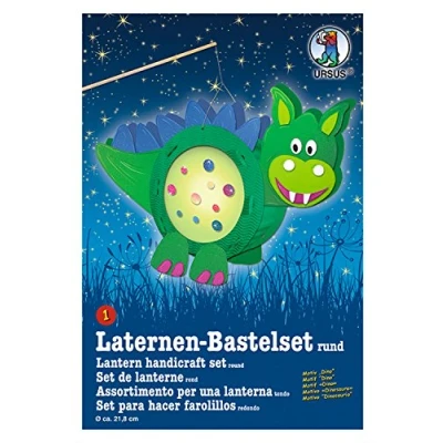 Craft set for a lantern in cute dinosaur design, for crafting an individual lantern Includes lantern punching part round, 2 sheets of tracing paper DIN A4, 4 sheets of photo card approx. 23 x 33 cm, 3 sheets of photo card DIN A5, one sheet of flitter paper approx. 16.5 x 23 cm, candle holder, lantern carrying handle including craft instructions (English language not guaranteed) Ready-made lantern with a size of approx. 21.8 x 21 x 10.3 cm provides a beautiful, eye-catching and colourful eye-catcher For crafting with children for an unforgettable time Suitable for Saint Martin's processions, children's parties, Halloween parties, lantern procession, or on a night hike, Manufacturer: Buntpapierfabrik Ludwig Bähr GmbH & Co. KG