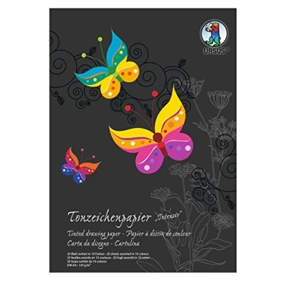 Tinted drawing paper Size: 21 x 30 cm 20 sheets assorted in 10 different colours. Paper thickness: 130 g/m² Coloured, high colour brilliance and light resistance, Manufacturer: Ursus