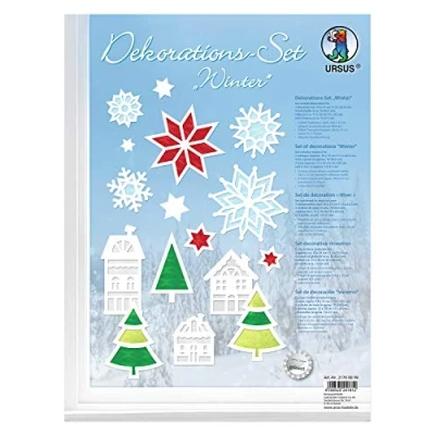 URSUS 21760099 Winter Decoration Set, Photo Cardboard, White, Approx. 24.8 x 33 cm, Laser Cut Motifs, 8 Sheets of Transparent Paper in 5 Colours, Includes Handicraft Instructions, Colourful