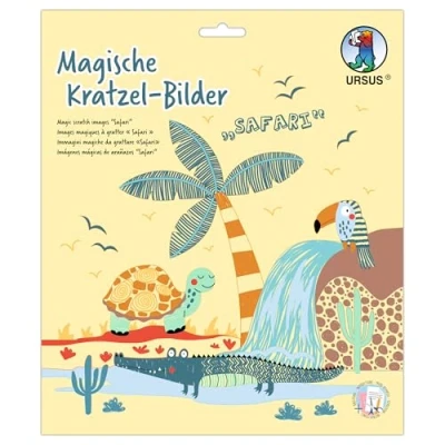 Ursus 2456 00 02F Magic Scratch Pictures Safari, 4 Designs, 21 x cm, with Bamboo Pen and Craft Instructions, DIY Set for Scratching, Creative