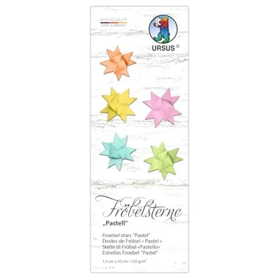 Ursus 3509 00 99 Froebel Stars Pastel 130 g/m² Coloured Drawing Paper 80 Folding Strips Size 1 x 50 cm Diameter 4.3 5 Colours with Craft Instructions DIY for