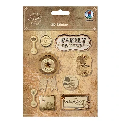 Ursus 40540002 3D Sticker Family in Vintage Design Self Adhesive Various Designs for Card Making and Decoration Gifts