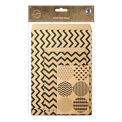 Kraft gift bags Contents: 6 pieces printed with prong lines. 3 x 14.8 x 21 cm and 14.8 x 10.5 cm Includes a sticker sheet