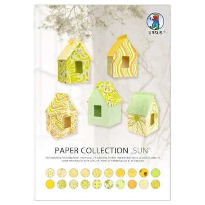 Ursus 61630002 Paper Collection Sun, 20 Sheets Handmade Natural Paper, 35 200 g/m², 23 x 33 cm, in Yellow Tones with Various Designs, for Versatile Crafts
