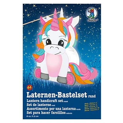 Craft set for a lantern in cute unicorn design, for crafting an individual lantern Included are lantern punched part round, 2 sheets of transparent paper DIN A4, 4 sheets of photo card approx. 23 x 33 cm, 3 sheets of photo card DIN A5, one sheet of flitter paper approx. 16.5 x 23 cm, candle holder, lantern carrying handle including craft instructions (English language not guaranteed) Ready-made lantern with a size of approx. 21.8 x 21 x 10.3 cm provides a beautiful, eye-catching and colourful eye-catcher For crafting with children for an unforgettable time Suitable for Saint Martin's processions, children's parties, Halloween parties, lantern procession, or on a night hike, Manufacturer: Buntpapierfabrik Ludwig Bähr GmbH & Co. KG