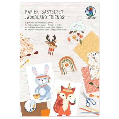 Ursus 8080002F Woodland Friends Paper Craft Set, Set of Photo Cardboard, Braiding Sheets, Punching Parts, Strips and Embroidery Thread, Includes Step by Instructions (English Language