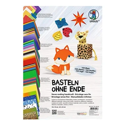 Handicrafts without end, craft paper with different materials, colours and motifs, 164 sheets, contains 100 sheets of folding paper, 3 sheets of corrugated cardboard, 10 sheets of glossy paper, 25 sheets of coloured drawing paper, 10 sheets of photo cardboard, 10 sheets of tracing paper, 6 sheets of motif photo cardboard. RPA20232320232023202323232323 Ideal as a basis for Versatile and creative craft work. en for crafting on birthdays, holidays, Christmas with friends and families, Manufacturer: Ursus