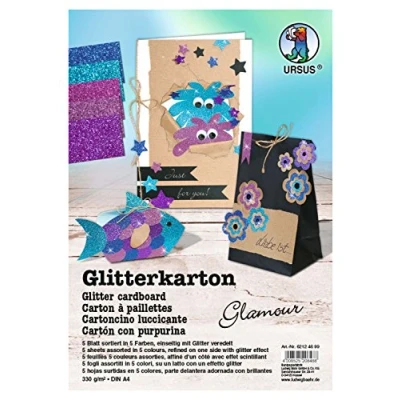 Ursus Glamour Glitter Card DIN A4 330 g/m² 5 Sheets Assorted in Colours, Multicoloured