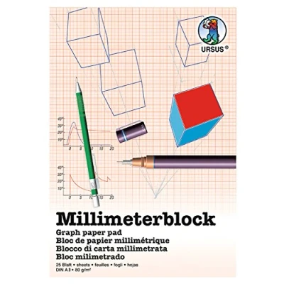 Millimeter block 25 sheets Size: DIN A3 Made of of, white paper Raster: 1 mm Red Print, Manufacturer: Buntpapierfabrik Ludwig Bähr GmbH & Co. KG