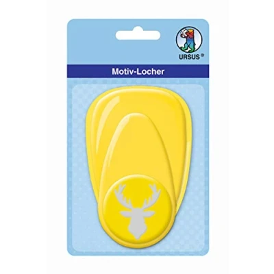 URSUS Motif Punch Made of Plastic Jumbo, Moose Head, Approx. 38.1 mm, Easy to use Thanks Lever Function and Practical catching Device, Yellow,