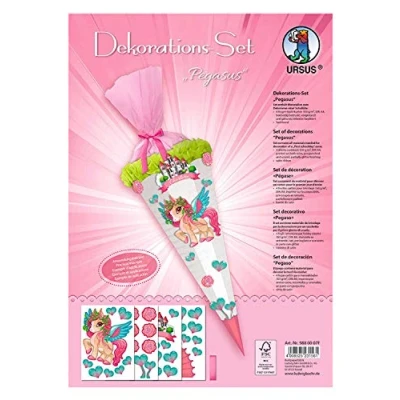 Ursus Pegasus 9880007F Decorative Set 4 Sheets of Craft Cardboard DIN A4 Printed on Both Sides Pre Cut Grooved for Decorating a School Cone Partially Finished with Satin Ribbon Colourful