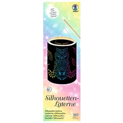 Craft set for a silhouette, lantern Motif: owl Finished lantern size: approx. 15.3 x 15.3 x 20 cm Contents: laser coloured drawing paper, transparent paper rainbow, lantern hanger and rod, lantern lid and base, as well as LED light (batteries required are included) Includes craft instructions, Manufacturer: Buntpapierfabrik Ludwig Bähr GmbH & Co. KG