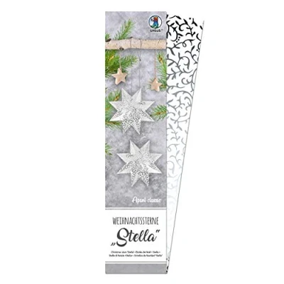 URSUS Stella Apart Classic 16140000 Poinsettia White 110 g Approx. 7 x 30 cm 33 Sheets Dyed Front with Pearl Effect Foil Finish in Silver Includes Folding Instructions