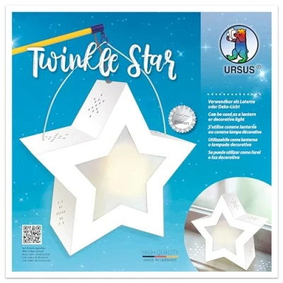 Twinkle Star colour: white Size: approx. 19.3 x 18.3 x 8 cm Contents: one lantern ? blank star, made of photo card 300 g/m², laser-cut and grooved, 2 stars made of transparent paper 115 g/m², a lantern carrying handle Photo card 300 g/m²